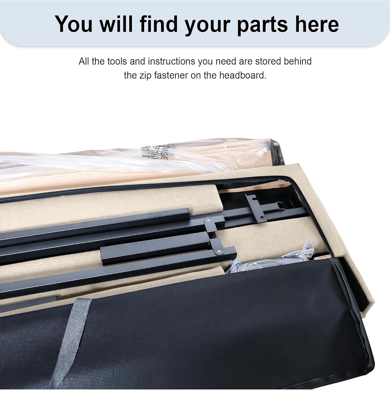 - Easy Assembly: Designed with user-friendliness in mind, this bed frame comes with clear instructions and can be assembled with minimal tools, you can find all the accessories in the zipped compartment on the back of the headboard. Save time and effort with this hassle-free setup
