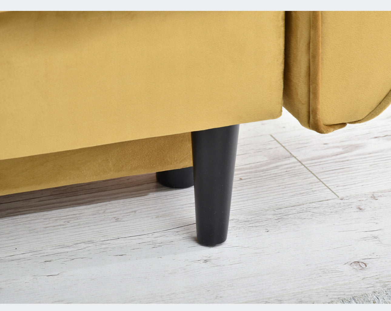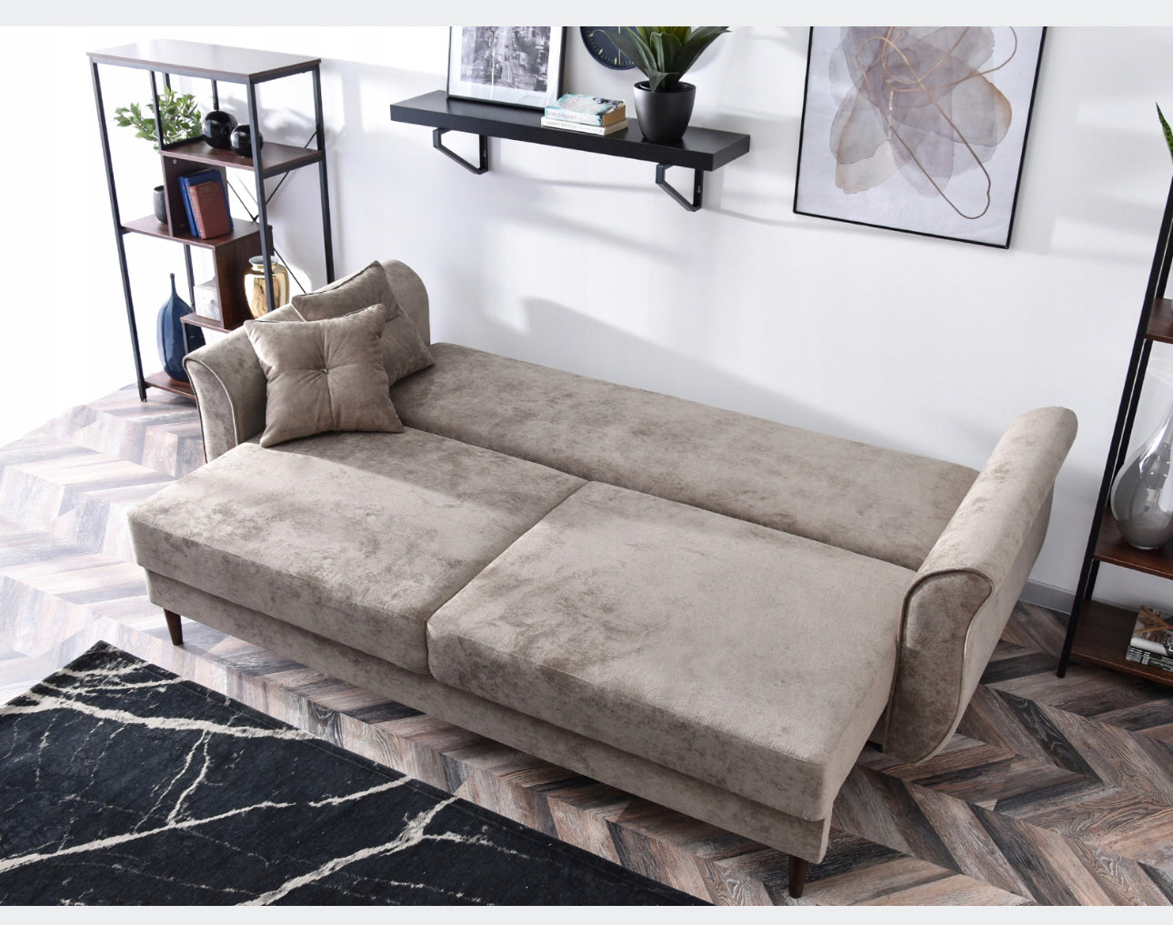 Delivery time 20 working days .A modern model of a sofa for the living room, which, thanks to its sensational shape, will perfectly emphasize the arrangement of any fashionable living room. A great model of a sofa bed, which, thanks to its extensive sleeping function, will be an ideal model for unexpected visits. The soft backrest has been enriched with effective quilting, which guarantees an elegant and subdued style of the whole. The model is recommended for every living room. We make the sofa in the fabric of your choice! Specification of the sofa from the photo dimensions | materials | colors | gallery dimensions: total length - 96 cm total width - 232 cm total height - 96 cm height of the backrest from the floor - 94 cm seat depth without cushion - 80 cm seat height - 45 cm height of the backrest with a pillow - 55 cm length (width) of the seat - 192 cm bacon height - 69 cm bacon length - 96 cm bacon width - 16 cm materials: seat - corrugated spring filling of the seat and backrest - highly resilient foam frame - solid wood and plywood color of the sofa from the photo: fabric - PIANO 15 (Regular group) threads - in the color of the fabric