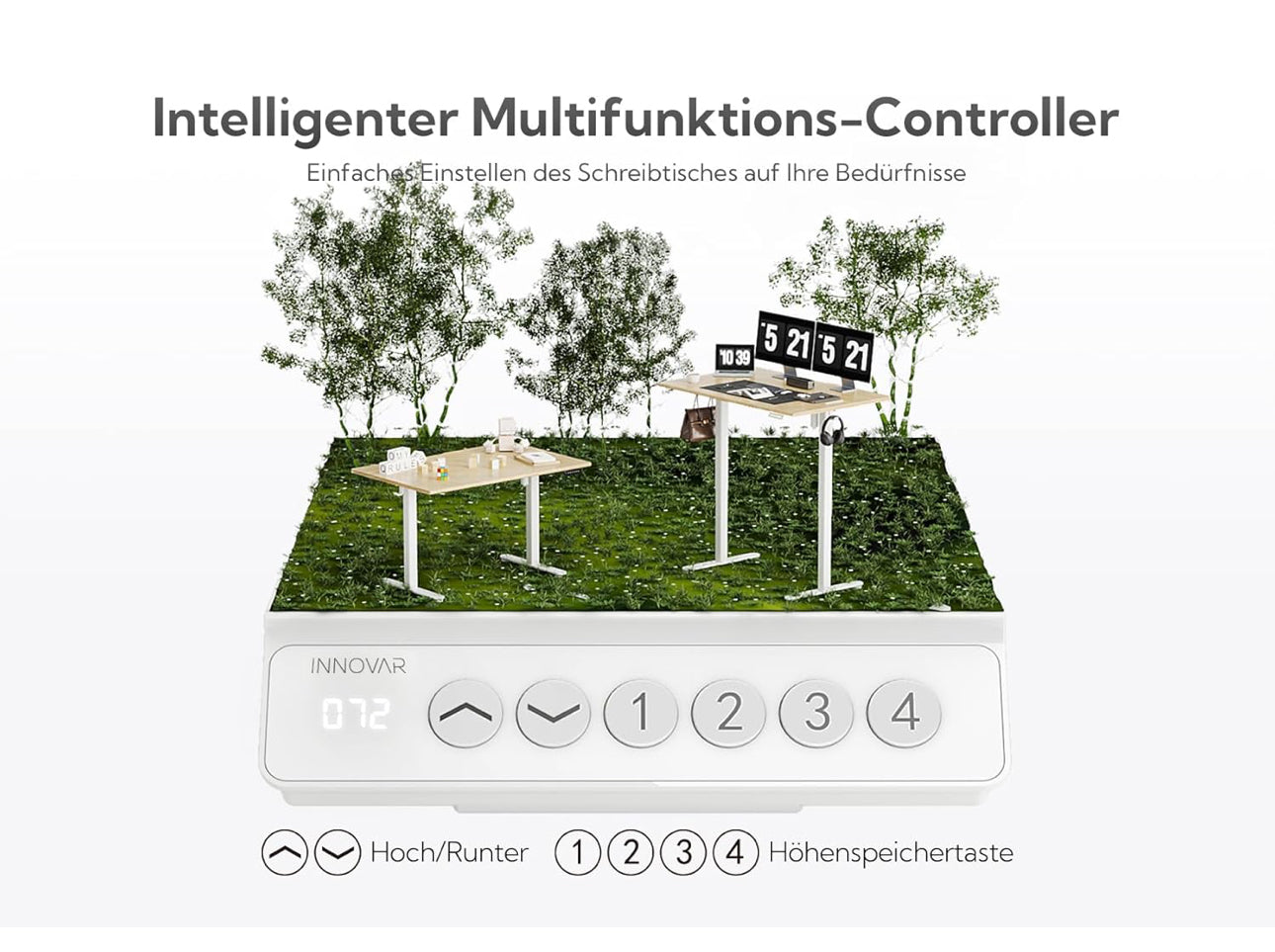- Electric Height Adjustable: The stand up desk features four preset buttons to customize your desired heights from 72cm to 118cm.