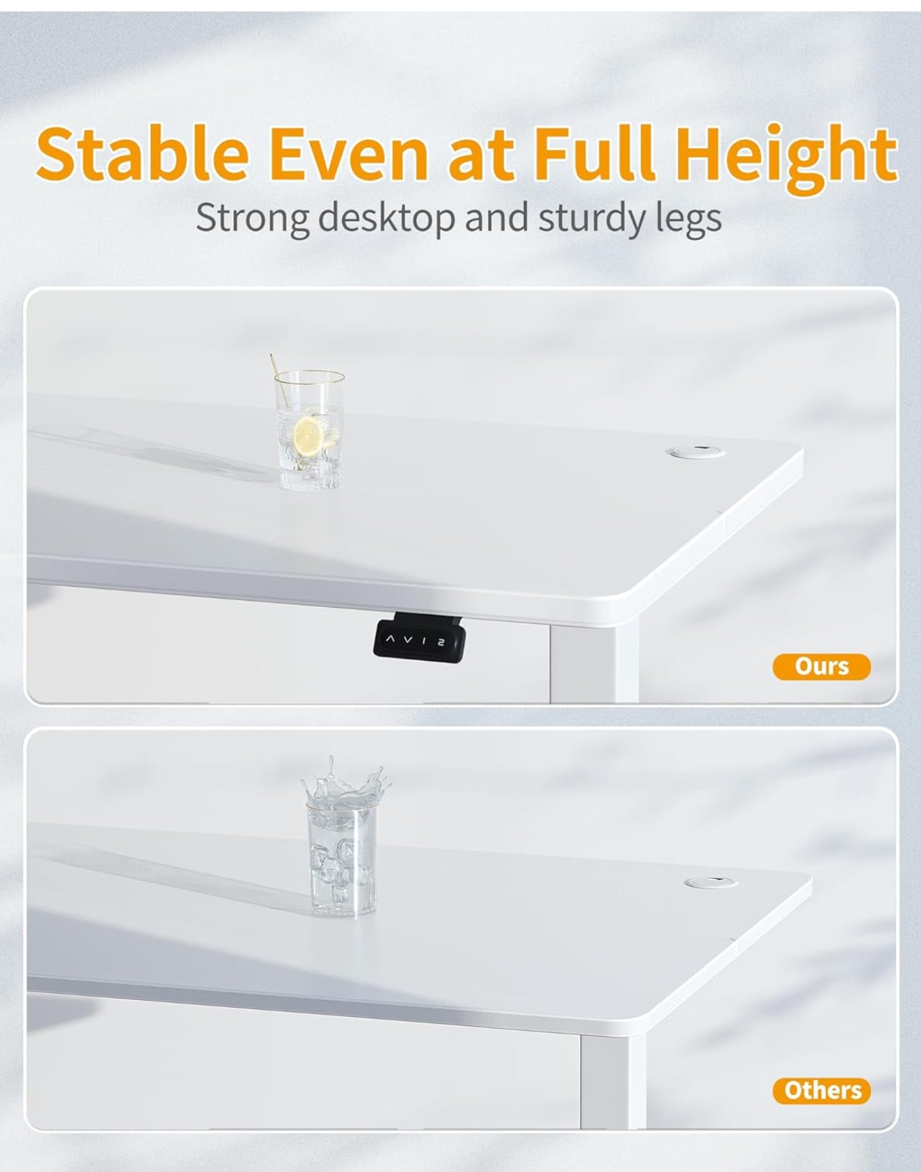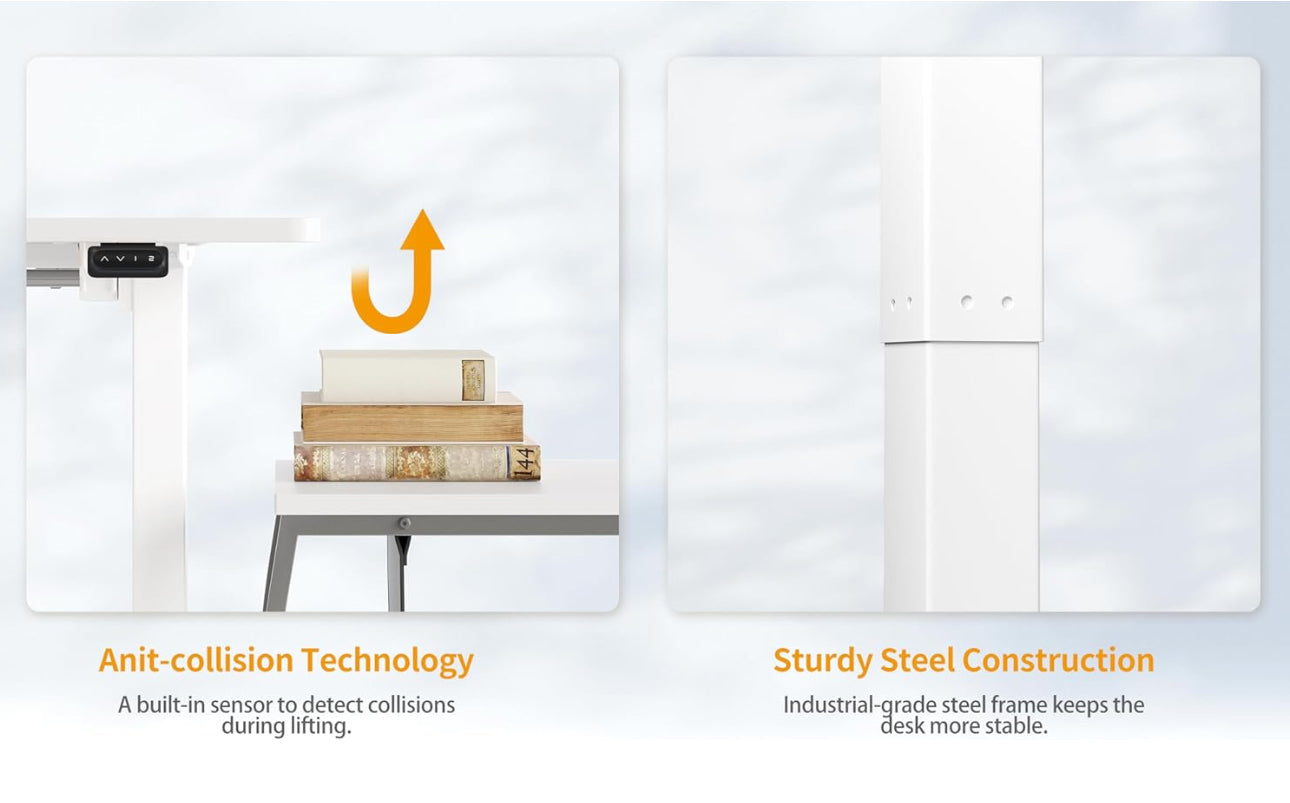 - 【Electric Lift System】: The sturdy steel lift system includes an industrial-grade steel frame with anti-collision features that can hold up to 176 lbs for stability and reliability, enduring over 50,000 lift tests. at the same time, The collision-free technology ensures that when encountering obstacles during lifting, the desk moves in the opposite direction to stay away from collisions.