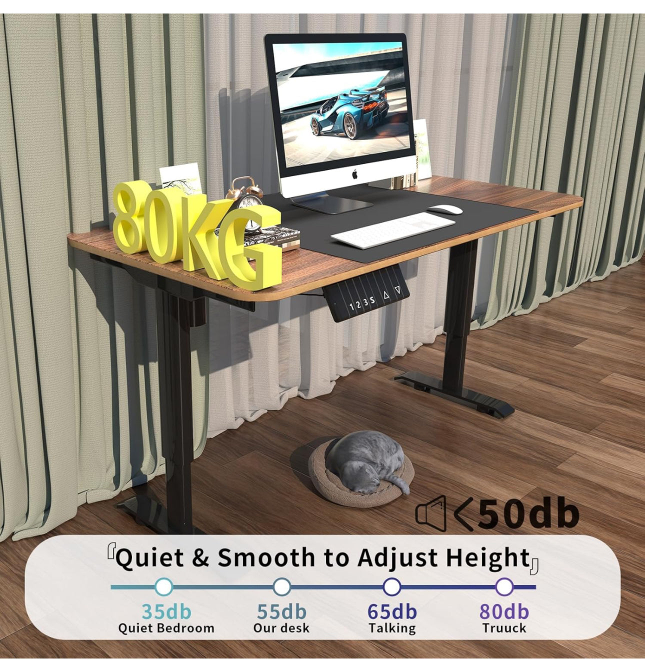 【Sturdy Construction】:The rising desk is built with a sturdy construction, ensuring stability and durability. It is capable of supporting heavy load-bearing capacity is 80KG.
