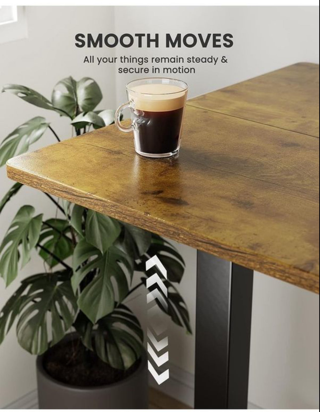 . Electric Standing Desk 120x60cm, Height Adjustable Standing Desk Sit Stand Desk 3 Memory Adjustable Desk with Hook Computer Desk for Home Office (Vintage Brown). Smooth Height Adjustment - Effortlessly adjust this sit-stand desk from 72 cm to 118 cm with a smooth electric mechanism. Perfect for transitioning between sitting and standing positions, ideal for homes, offices, and workspaces.