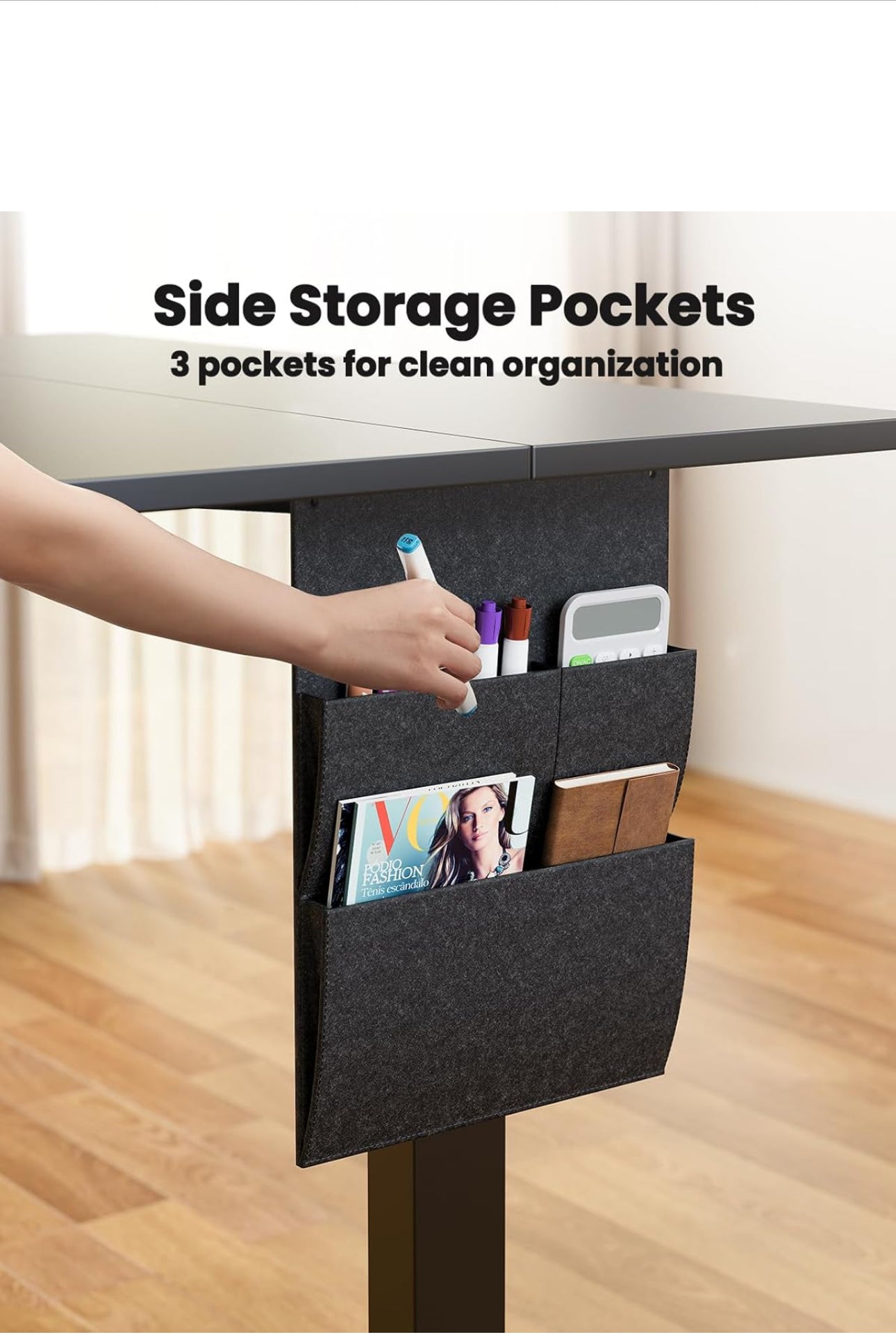 Standing Desk 120x60cm, Supports Up to 80KG Height Adjustable Electric Standing Desk with Storage Bag,Sit Stand Adjustable Desk with Backpack Hook and Memory Smart Pannel for Home Office. Shape Rectangular Desk design Computer Desk Product dimensions 60D x 120W x 70H centimetres Colour Black Style Contemporary 【Up to 80KG load capacity】Our Electric Standing Desk are equipped with high-quality carbon steel frames for maximum durability and stability, can withstand up to 80 kg and the motor works quietly with a noise level of less than 50 dB, ensuring a quiet working environment. 【Healthy working in the office 】With the Height Adjustable Desk,you can switch between sitting and standing as required and is infinitely height-adjustable between 71 and 119 cm. Say goodbye to tiredness caused by poor sitting posture or numb legs. Also suitable for children and teenagers for daily learning. 【Multifunctional Side Storage Pocket】Adjustable Desk with Storage Pocket to keep your tabletop clutter-free for a more productive and efficient workflow; Double-layered design is more convenient for storing folders, notebooks or other office supplies. 【Safe&Health】The Standing Desk has CARB certified and has significantly reduced formaldehyde and other VOC emissions, making it not only compliant with meeting safe.