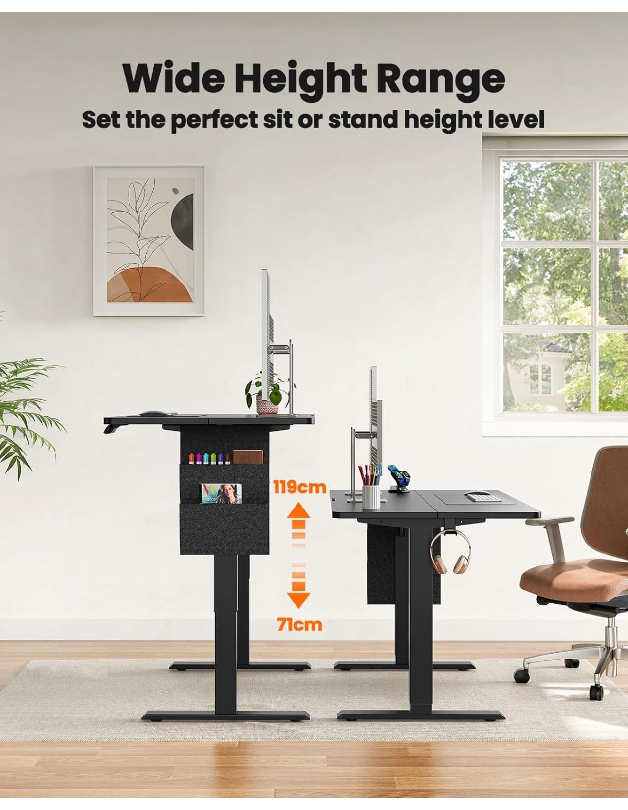 Standing Desk 120x60cm, Supports Up to 80KG Height Adjustable Electric Standing Desk with Storage Bag