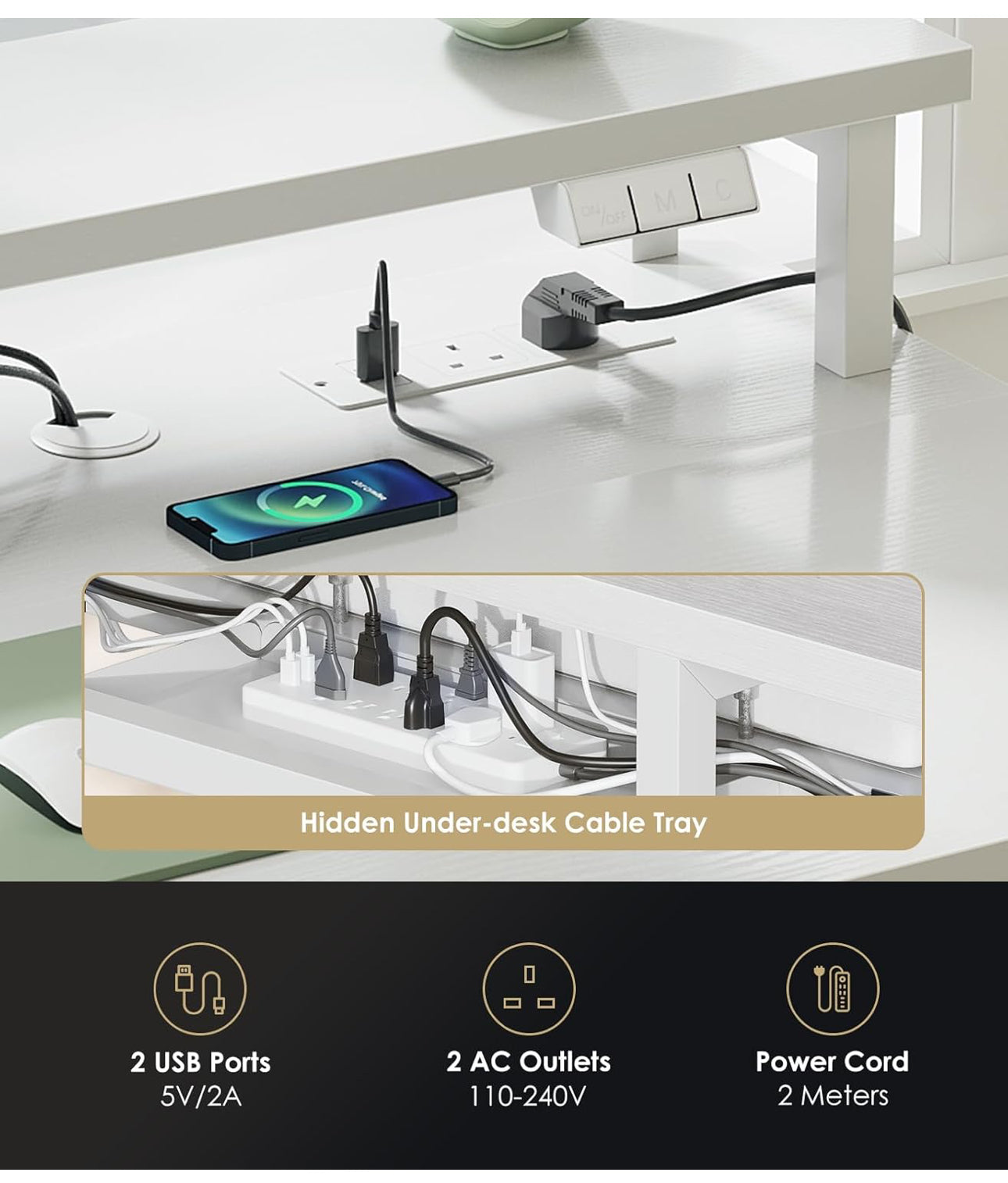LED Lighting / USB ports are mains operated and require plugging in.