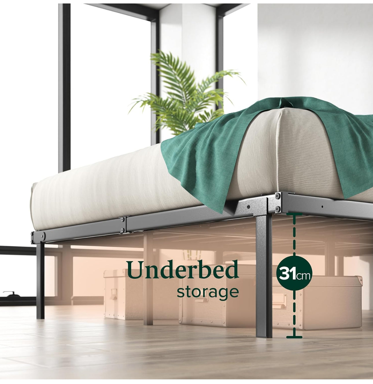 Super King Bed frame - Bed 180x200 cm - 36cm Height - Metal bed frame with Underbed storage and steel slat support - Foldable bed - Black. VERY STURDY MODERN STYLE - GREAT SUPPORT